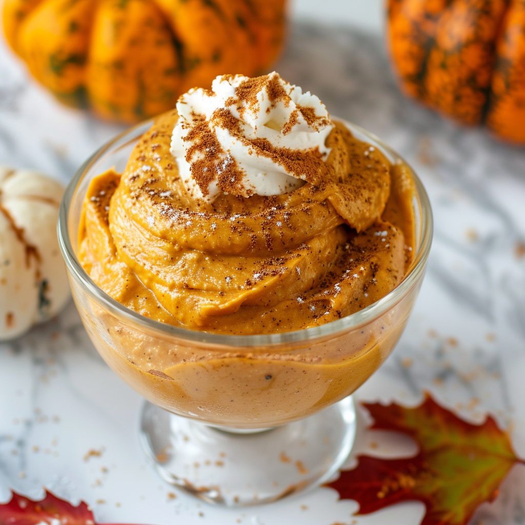 A light and airy mousse made with canned pumpkin, Greek yogurt, and a touch of maple syrup. Perfect for a guilt-free fall dessert that feels indulgent but keeps things light.