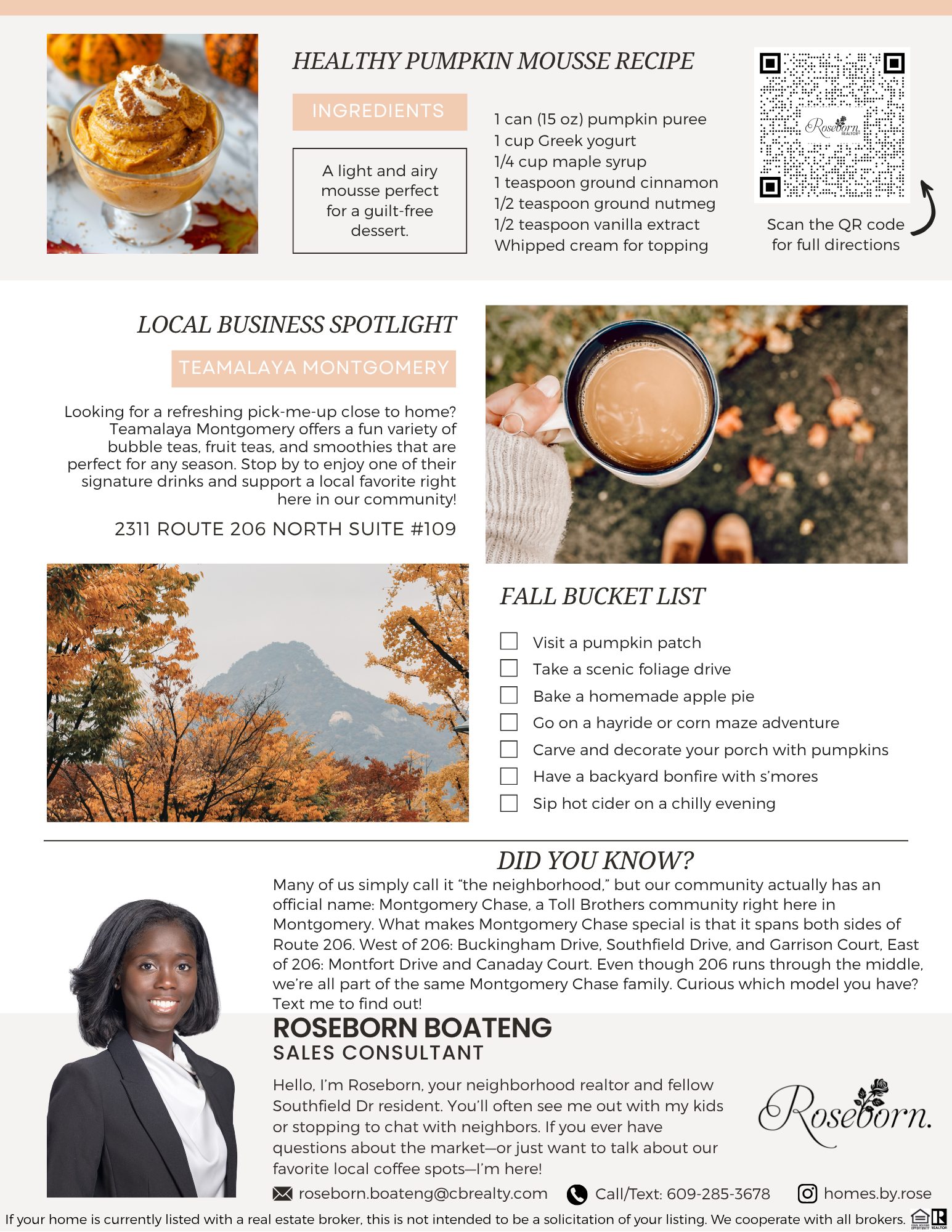 Montgomery Chase Newsletter 🍁 Healthy Pumpkin Mousse Recipe A light and airy mousse made with canned pumpkin, Greek yogurt, and a touch of maple syrup. Perfect for a guilt-free fall dessert that feels indulgent but keeps things light. Serves: 4 🛒 Ingredients 1 can (15 oz) pumpkin puree 1 cup Greek yogurt 1/4 cup maple syrup 1 teaspoon ground cinnamon 1/2 teaspoon ground […]